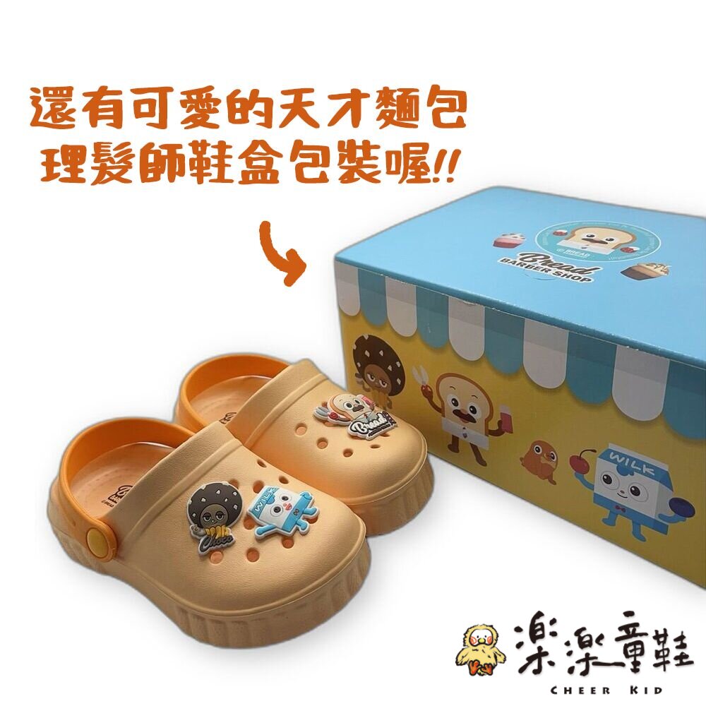 鞋面有可愛的麵包立體圖案扣飾