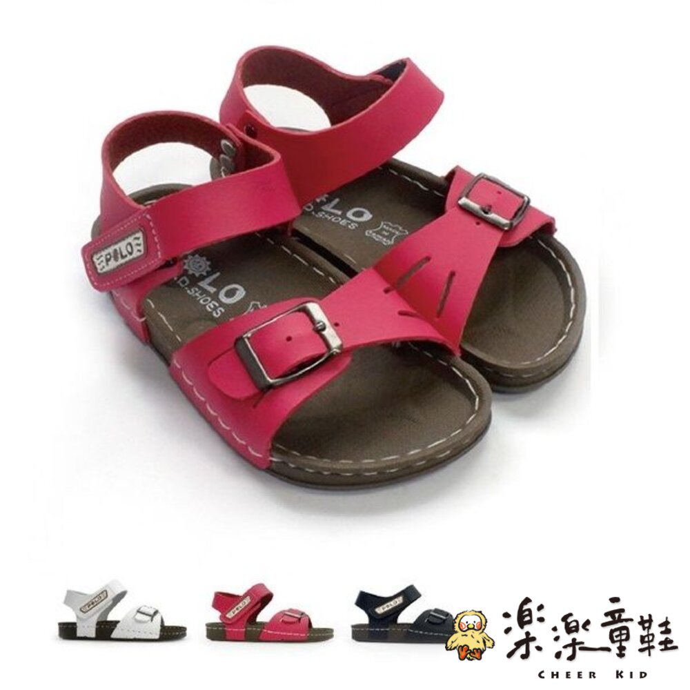 可調式金屬扣環、魔鬼氈固定、鞋頭防踢撞設計。