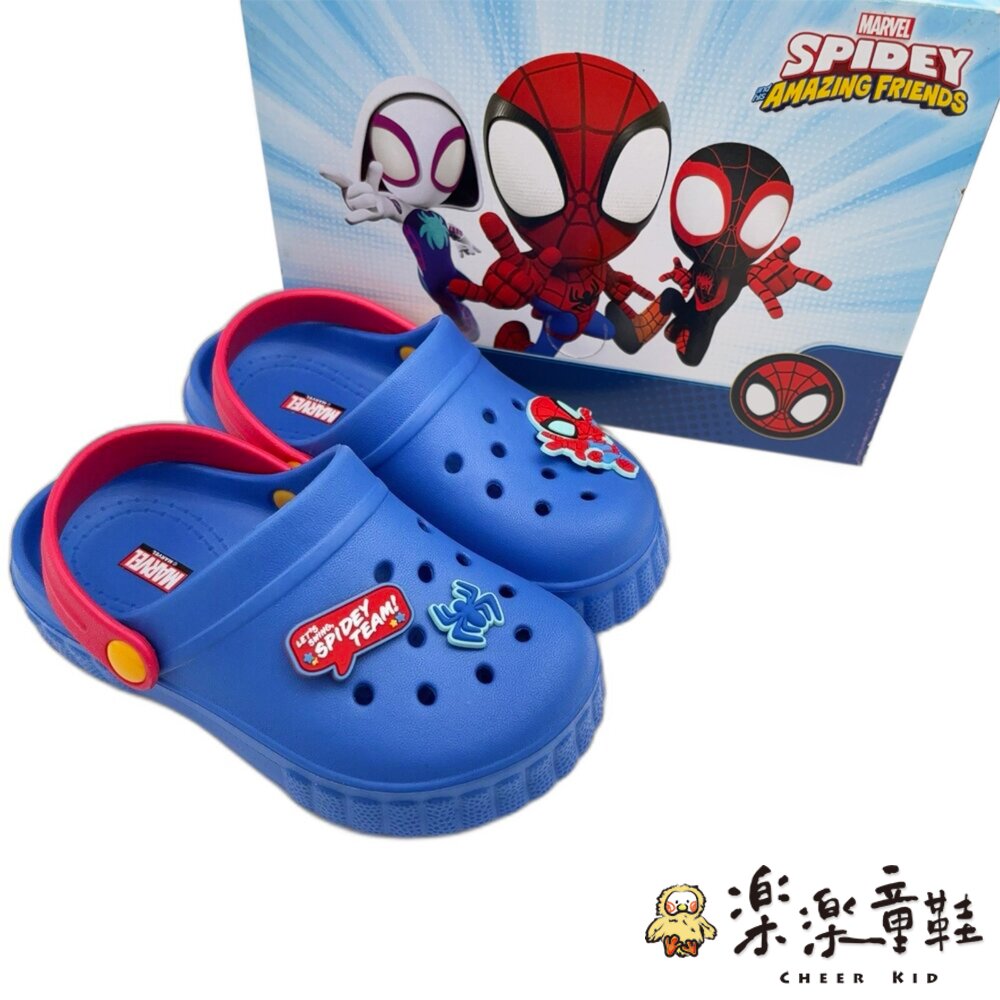 鞋面有帥氣的蜘蛛人立體圖案扣飾