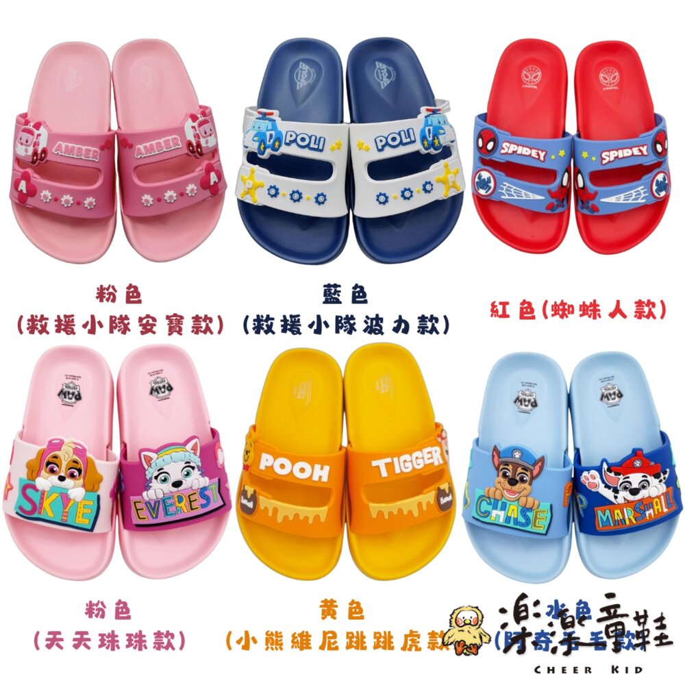 黃色(小熊維尼跳跳虎款)、粉色(天天珠珠款)、水色(阿奇毛毛款)