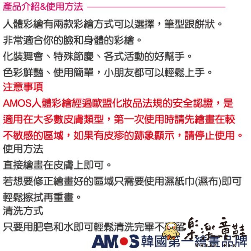 韓國AMOS12色人體彩繪棒 棒狀設計好著色
